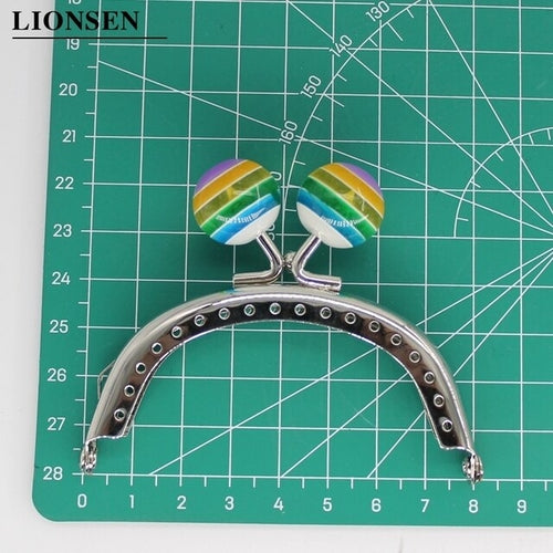 8CM Stripe Beads Silver Metal Purse Frame Handle for Clutch Bag