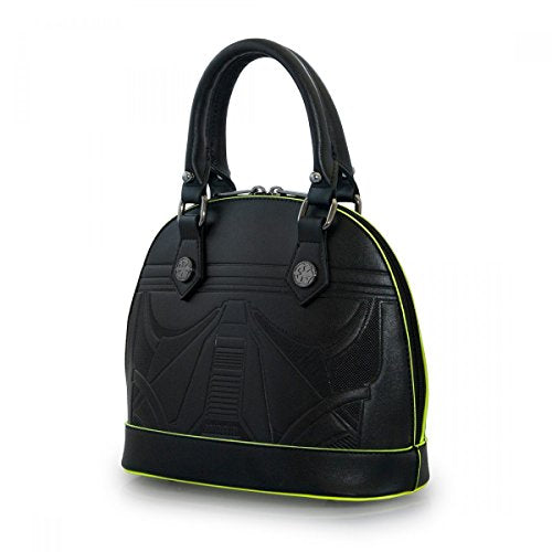 Details: The Empire has a couple of requirements before you become a Death Trooper. You gotta be loyal to Director Krennic. You gotta look good in black. And you gotta be a good shot. None of this Stormtrooper nonsense. Let this Death Trooper Mini Dome Vegan Leather Bag from Rogue One: A Star Wars Story reveal the black of your soul. Well, and the fluorescent green bits, too. It'll hold your ID cards, your credits, and your phone so you can call up your buddy when you can't understand the comm and be like, "What'd he say? Oh yeah, and are we on for poker Saturday? Ring me back after this firefight."