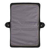 - Extension panel accommodates longer dresses and suit jackets. Metal hanger clamp helps secure hanging garments. Large zippered panel pockets and corner accessory pockets provide packing flexibility