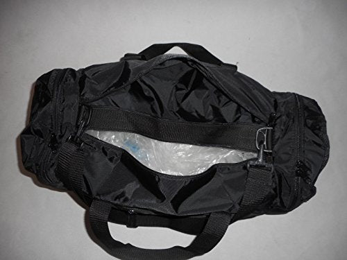 Details: item # 233 Size : 22" width x 11" Height x 10 1/2" depth. Has Main Compartment top Zipper Opening and also another Zipper Section which Leads you To Wet Compartment. 2 Separate end compartment,one Mesh one enclosed and front pocket. 420 Denier Nylon Water resistant Thank you.
