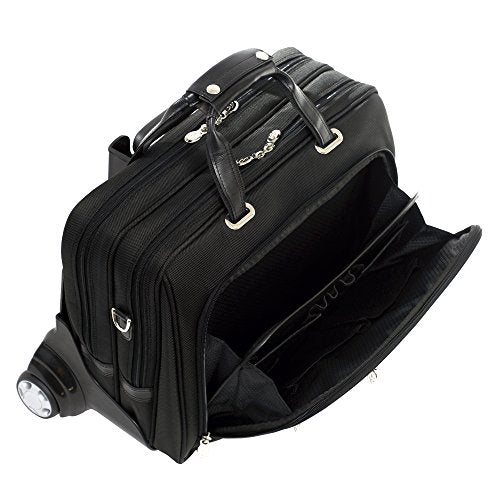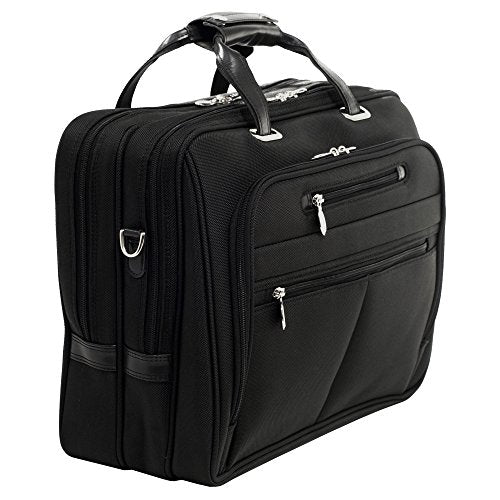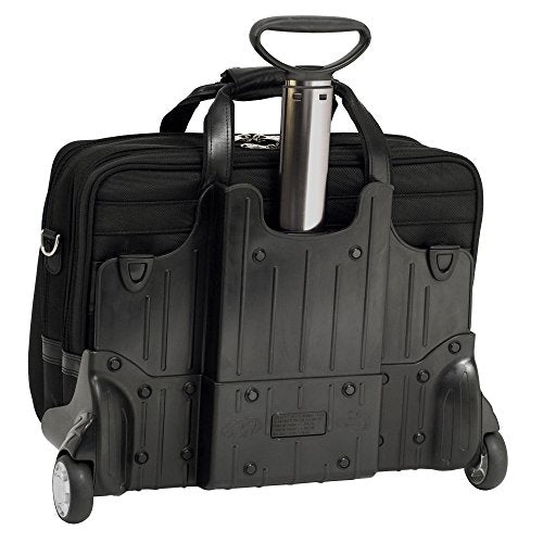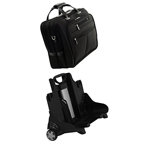 Details: Patented 2-in-1 Detachable Wheel and Handle System. Secure, detachable patent pending Fly-Through Checkpoint-Friendly laptop sleeve design. Laptop sleeve padded with high-density foam fits most laptops 15.6" in screen size. Adjustable, non-slip, shock absorbing shoulder strap alleviates body strain. Front zipper pockets provide storage space for small miscellaneous items. Front organizer with storage space for media devices, cell phone, business cards, key holder and pens. Front compartment features file divider for documents.