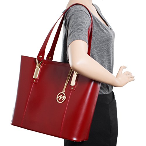 Details: Fashionable functionality is the M Series mantra and begins with the elegant Gold key chain, exposed zipper, easy access exterior back pocket. Top color coordinated zipper opens to a fully lined interior compartment. One pocket is perfect for tablets. Easy access front pocket for small items. The other wall of this spacious tote offers double lined zipper & easy access pockets. Black & White Paisley Lining. Gold studded feet for stronger stability. Vertical Style.