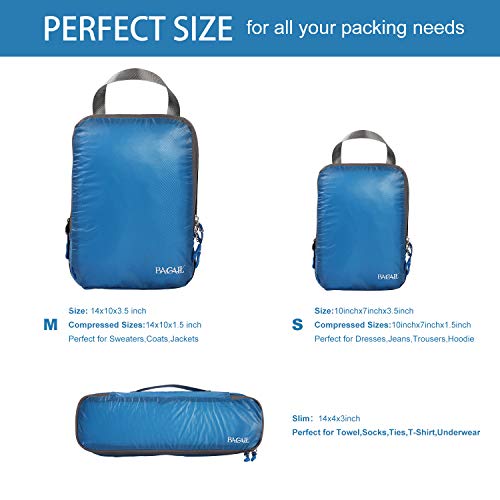 - Items Included:This combination includes 2 M Size Ultralight Compression Packing Cube:(14x10x3.5inch),2 S Size Ultralight Packing Cube(10x7x3.5inch)and 2 Slim Incompressible Packing Cubes(14x4x3inch)