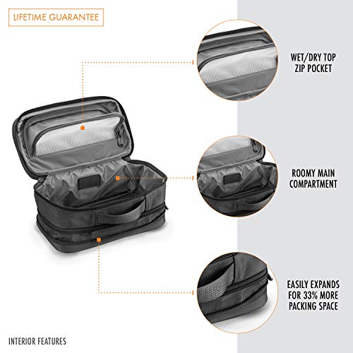 - Expandable Toiletry Kit: This versatile dopp kit features a main compartment that expands up to 33%; Zippered mesh lid pocket holds cosmetics or small toiletries; Wet/dry interior prevents luggage leaks