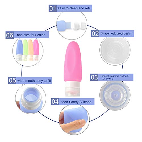 - Food Safety Silicone & Anti-leak Design:100% BPA-free, BPA free guaranteed, FDA Certificated airline silicone travel bottles. 3-layer leak proof wall with self-sealing valve ensures no leakage or spill.