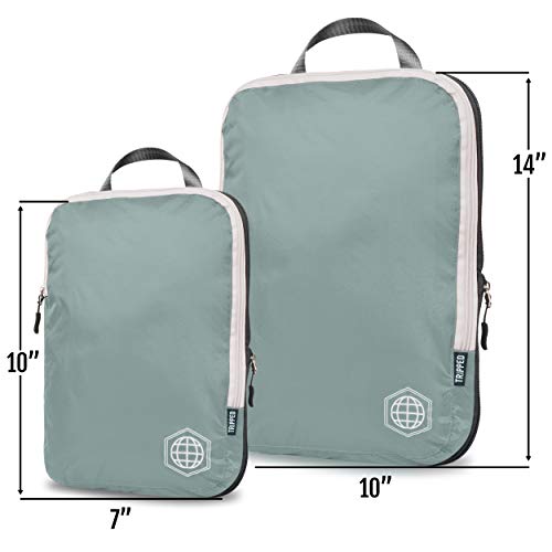 Details: The search for the perfect compression packing cubes set ends here. TRIPPED Travel Gear compression luggage cubes are the perfect blend of high quality and affordable to make this the ultimate travel accessory- whether you're looking for a backpacking organizer or a way to organize your carryon suitcase. The bags are made of water resistant ripstop nylon that is incredibly strong but lightweight. No matter what you're packing for, pack it in these cubes to compress the clothing and eliminate wasted space in your carry on. Never heard of us over at TRIPPED Travel Gear? We started this company after living out of backpacks for a year straight. We're still on the road right now in fact- constantly tweaking some of our travel gear while adding new products to the lineup. The bags are made of water resistant ripstop nylon that is incredibly strong but also extremely lightweight. Call them whatever you want- compression packaging cube, luggage packing bags, bolso de viaje, compression sacks, travel pouches, etc. If you're looking for the best space saving luggage organizers you've found it. Best of all-they're backed by our 100% satisfaction guarantee. If your bags should rip, fail or be destroyed by wild monkeys, we'll get you a replacement set immediately.