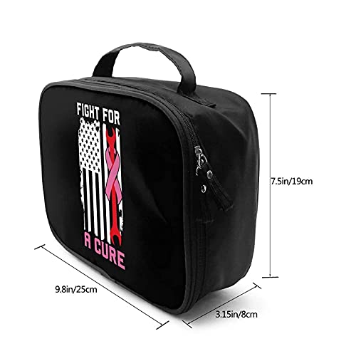 Fight For A Cure Mechanic US Flag Cosmetic Bag Cute Makeup Travel Case Toiletry Bag Zipper Makeup Pouch Purse Travel Storage Organizer
