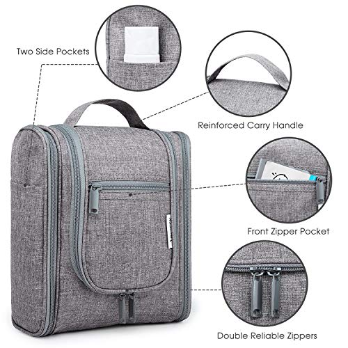 Hanging Travel Toiletry Bag Cosmetic Make up Organizer for Women and Men (Grey)