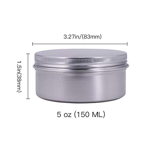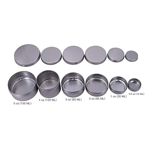 Details: Package:Healthcom aluminum silver tin metal storage containers metal steel tin flat container screw top round steel tin cans,5 oz,150ml,12 Pcs. Capacity:5 Oz,150ml. Diameter:3.27 inches(83mm). Depth:1.42 inches(36mm). Healthcom professional aluminum tin containers round Lip balm tin container bottle with screw thread lid - great for store spices,candies,tea or gift giving. Can be used to hold a wide array of handmade lotions, salves, creams and balms. Can also be used to store accessories, small jewelry and trinkets. Perfect for lip balms, lip gloss, mini candles, cosmetics, sample pots, herbs, nail art, DIY lip balms, pills, party favors, candies, mints, vitamins, or to include in gifts etc. Metal tin is chemical resistant.Screw Twist Top ensures your products stay fresh and do not leak or spill out.
