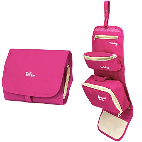 Miami CarryOn 3 in 1 Toiletry Bag - Foldable Hanging Toiletry Bag (Pink)