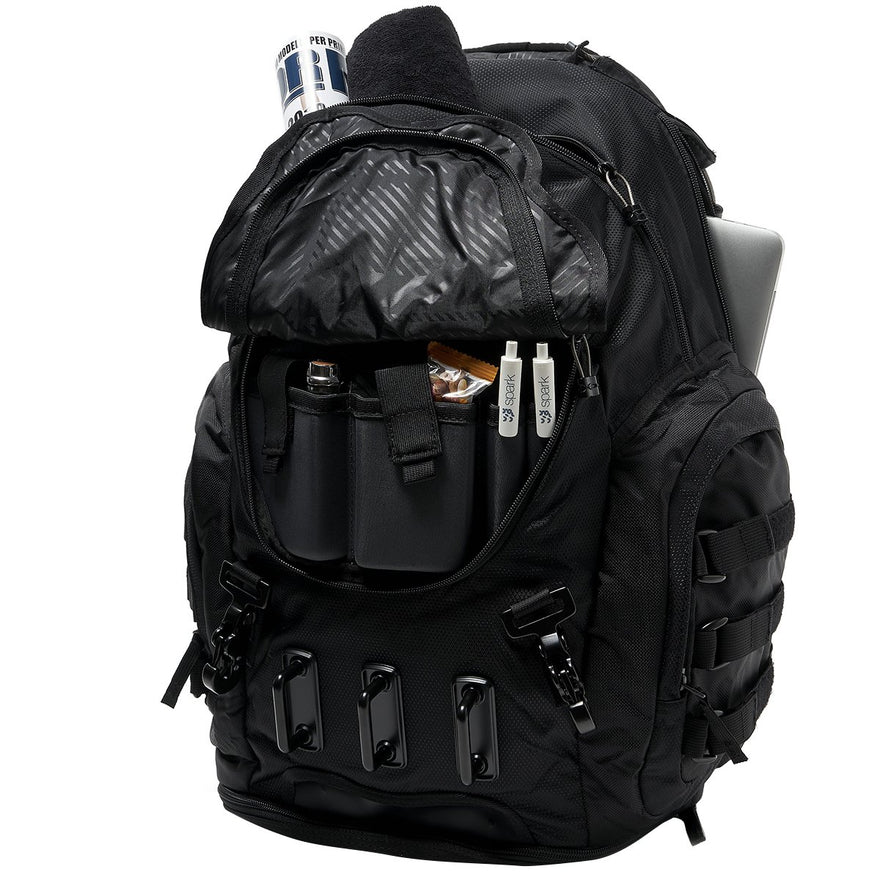 Details: Outfitted with serious hardware and versatile storage options, the Kitchen Sink Backpack is a complete package with heavy–duty appeal. Whether taking a day trip or extended excursion, specialized pockets inside and out organize items while abrasion–resistant fabric keeps them safe, including shoes and most 17" laptops. A padded back and adjustable mesh–lined shoulder straps keep you comfortable and cool when hauling over long distances. Equipped with a hard media–player compartment and reinforced clip and zip closures, the Kitchen Sink Backpack blends toughness, style and diverse function ideal for the unpredictable day.Bottom shoe compartment provides spacious storage.