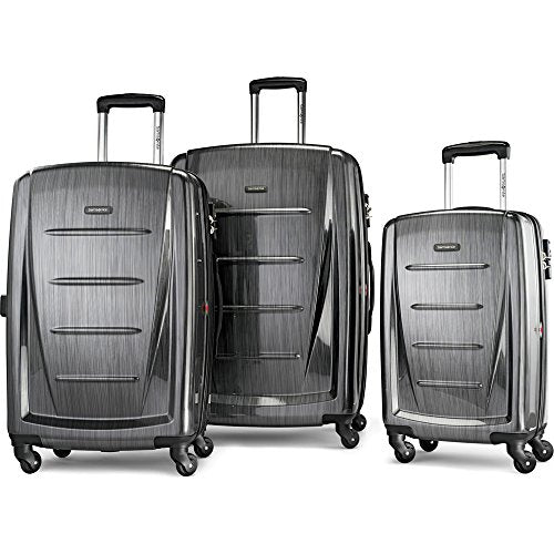 - BUNDLE INCLUDES: Samsonite Winfield 2 Fashion Hardside 3 Piece Spinner Set, Charcoal - Inflateable Neck Pillow - Notepad - Passport Case - Ear Plugs - Sleep Mask - TSA lock - Luggage Cover - Luggage Tag - Digital Luggage scale - Wired in-ear Earbuds