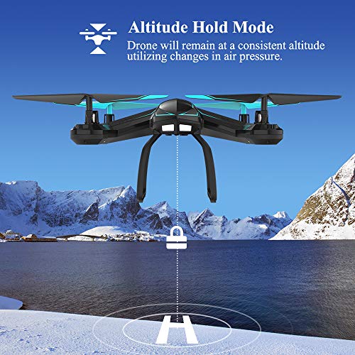 - 【ALTITUDE HOLD】 Powerful air pressure altitude hold function allows you to release the throttle stick and the drone will keep hover at its current height. Easy for kids and beginner to pilot.