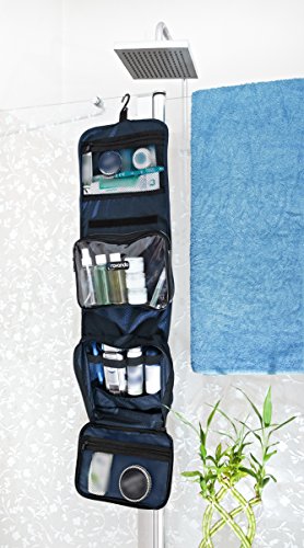 - ✅ SMART-HOOK - Use the built-in SMART-HOOK to hang the toiletry bag on all handles, bars, doorknobs and lock it with the rubber loop
