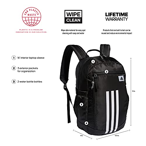 Details: Keep your gear organized on the go with this adidas backpack. multiple zip compartments keep everything in its place. a computer sleeve inside the main compartment holds your laptop. a padded back panel and shoulder straps keep you comfortable even when your books are heavy.
