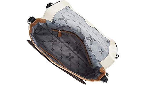 Details: Take a look under the flap--there's lots of pockets to store your must-have items for the day in this leather crossbody bag. - From Aimee Kestenberg. - Style: Lizette. - Flap with magnetic closure; slip pocket with zipper entrances on either side; one back slip pocket with magnetic closure; one front slip pocket with magnetic closure; handle; adjustable crossbody strap; silvertone hardware. - Signature lining, back zipper pocket, two front slip pockets. - Measures approximately 10-1/2"W x 8-1/2"H x 3"D with a 6" handle drop and 20" to 22" strap drop; weighs approximately 1 lb, 2 oz. - Body/trim 100% leather; lining 100% polyester. - Imported