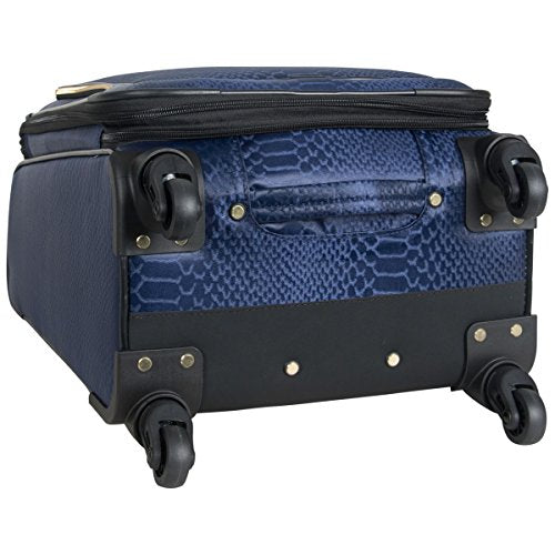 - 20" jacquard python printed polyester expandable 4-wheel carry-on luggage. 4-wheel spinners allow for effortless 360 degree navigation allowing you to get to where you're going faster. Lightweight construction helps you meet airline weight restrictions, to avoid unnecessary airport fees. Stylish, jacquard python printed polyester exterior with fully lined tear-resistant interior.