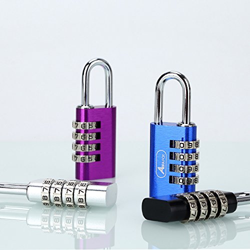 ABRAFOX Padlock, Set Your Own 4 Digit Combination Luggage Lock Blue+purple 2-pack
