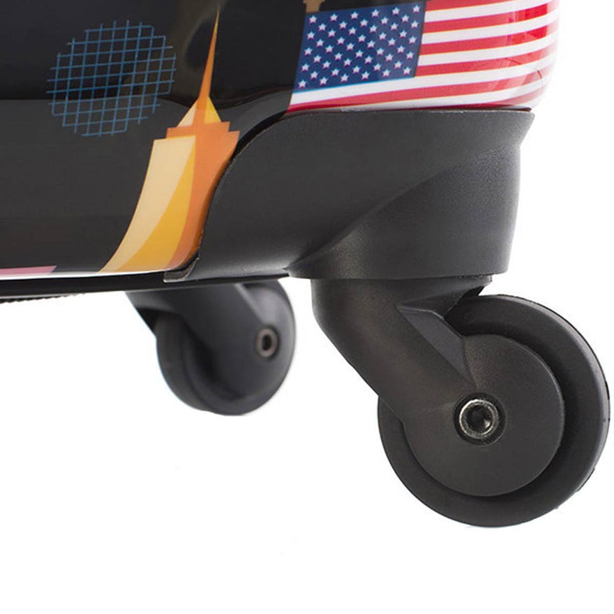 The FVT - USA Spinners are part of a Limited Edition Series of luggage created by renowned digital artist Fernando Volken Togni. Fernando is a Brazilian-born illustrator who currently lives and works in London. His intricate compositions and bold use of colour are influenced by the observation of details and daily life. Through vivid colours and sharp shapes Fernando forms an eye catching organized chaos.Inspired by icons and landmarks unique to the United States, the FVT ndash; USA Spinners adds a flair of American pride to your luggage and will not go unnoticed. Take America with you wherever you go, the artwork has been uniquely designed to represent and celebrate the United States as a nation. The vibrant luggage prints are protected by a layer of clear coat which also gives it a beautiful glossy shine.