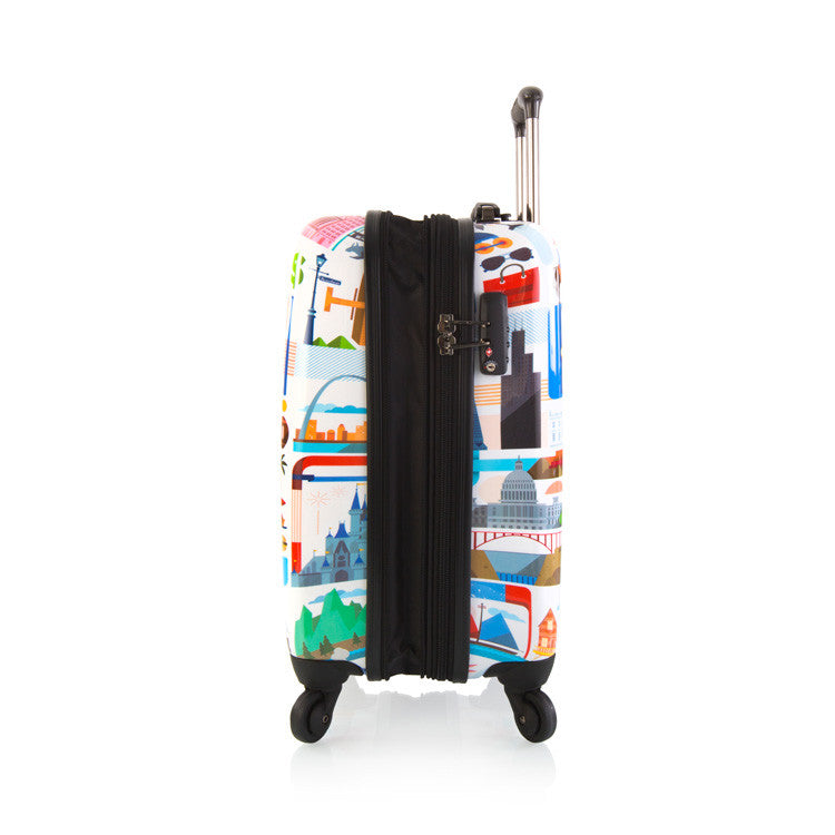 Inspired by icons and landmarks unique to the United States, the FVT ndash; USA Spinners adds a flair of American pride to your luggage and will not go unnoticed. Take America with you wherever you go, the artwork has been uniquely designed to represent and celebrate the United States as a nation. The vibrant luggage prints are protected by a layer of clear coat which also gives it a beautiful glossy shine.