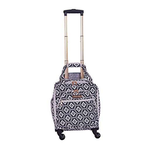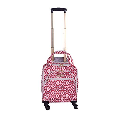 Details: Custom Jenni Chan gold tone hardware, Soft easy-grab tote handles, Recessed telescoping handle, hidden when not in use, 4 spinner wheels made of special rubber blend for quiet rolling, Main compartment opens fully, Multiple interior pockets, Clear padded cosmetic case is detachable, Fully lined interior, Zippered side pockets, Large front pocket with tablet & phone holder, Extra front stash pocket, , , , ,