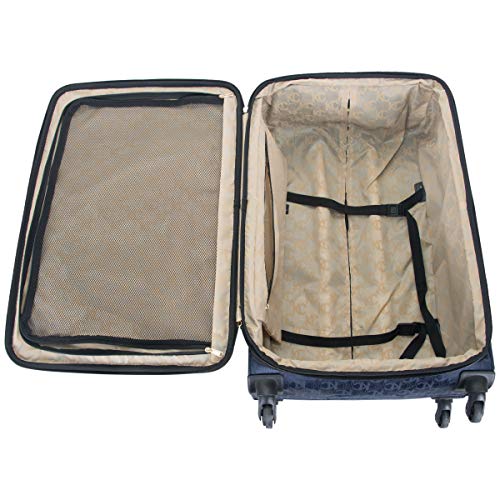 Details: 4-Wheel spinners allow smooth 360 degree rotation Lightweight Construction helps to meet airline weight restrictions expands an additional 2.0 inches for greater carrying capacity when needed hi-density KC logo jacquard polyester exterior with a fully lined, tear-resistant interior two front exterior zipper pockets for additional storage and easy to grab frequently needed items Main Compartment interior consists of side zipper pocket for smaller items and securely buckled garment straps under-the-lid section features a large u-shaped mesh zipper compartment padded, comfortable top and side grab handle for easy lifting Locking sliders made with zipper pullers that fit a TSA lock or pad lock for ultimate security premium self-repairing gold zippers and hardware designed for long-lasting use locking, retractable trolley handle extends to be 41 inch tall and has a convenient push button mechanism overall Dimensions: 30.5" H x 18" L x 11"-13" D (includes wheels) weight: 7.95 lbs. includes a 10 year limited manufacture warranty