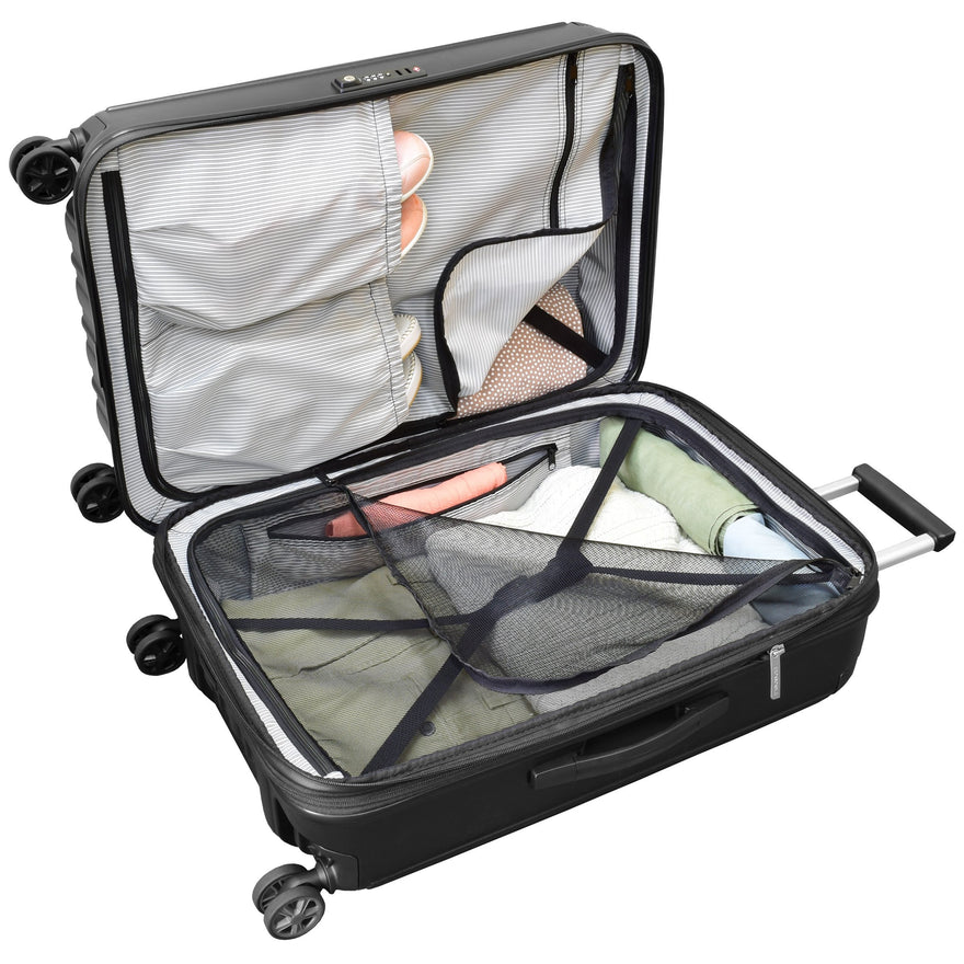- Durable lightweight, 100% polycarbonate hardside construction and scratch resistant micro texture finish.