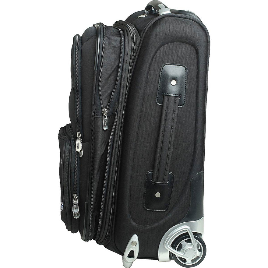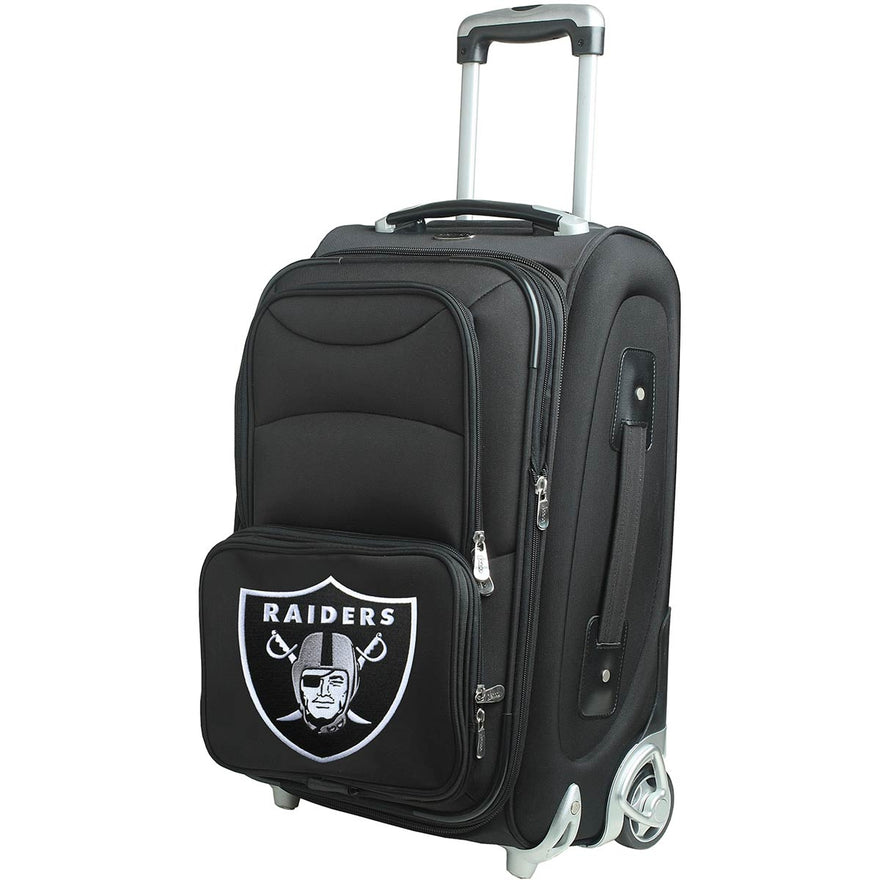 Show your affection for your favorite team with this stylish, 21-inch 2 wheeled carry on upright. The sturdy, fully lined suitcase is crafted from black nylon with a durable polycarbonate frame, and features your team Logo applique, perfect for displaying your team spirit.Other features of this case include padded top, side and bottom grab handles that make it easy to lift no matter how it is stowed.