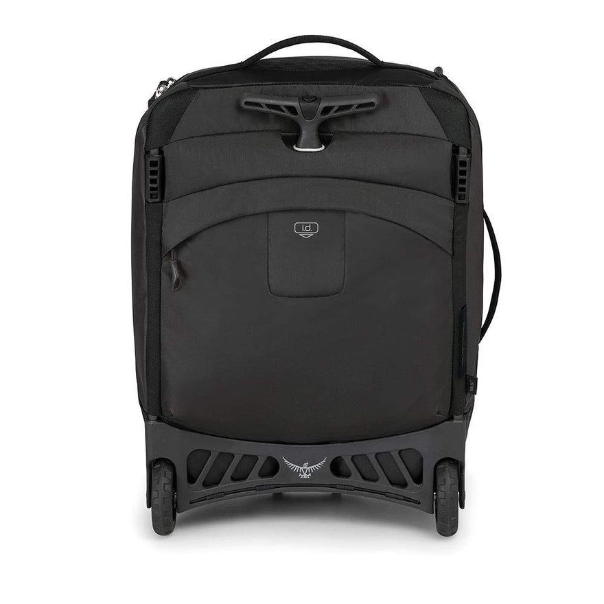 Details: The Osprey Transporter Wheeled global carry-on offers the convenience of wheeled luggage, built to take a beating, all within a global airline standard carry on suitcase size. The HighRoad LT chassis rolls on 90mm wheels for smooth rolling and extra durability. The handle is made from a strong but light 6061 aluminum alloy tubing with a T-shaped handle. Extra carrying options include padded top and side handles. The main compartment of the pack opens wide making packing easy while also having two large zippered mesh pockets on the inner wall for organization. The inside of this travel bag also has compression panels to prevent clothes from getting wrinkly. Other travelling focused features include a padded 15” laptop sleeve, an RFID security pocket inside the computer sleeve, and zippered backpanel pockets for a little extra storage.