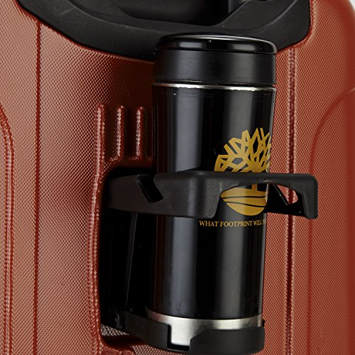- Cup and phone holder located in back of luggage for EXTRA travel convenience
