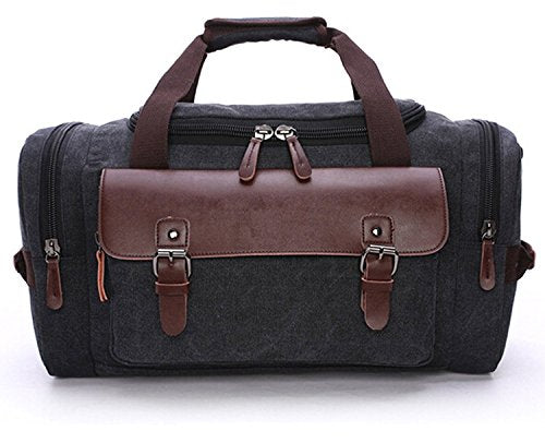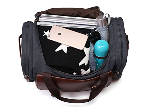 Berchirly Canvas Leather Travel Bag Duffel Bag With Shoulder Strap