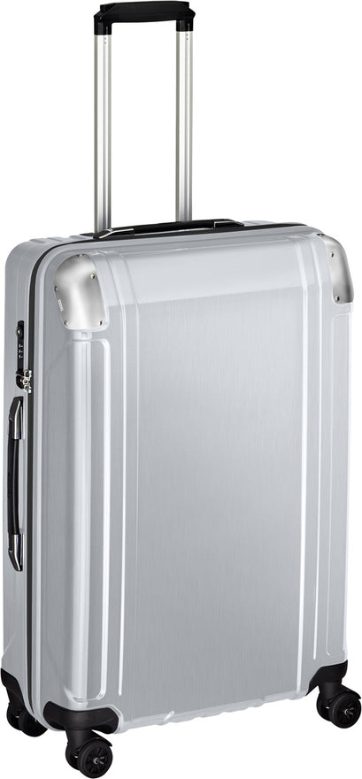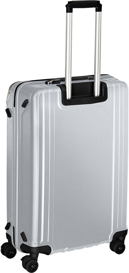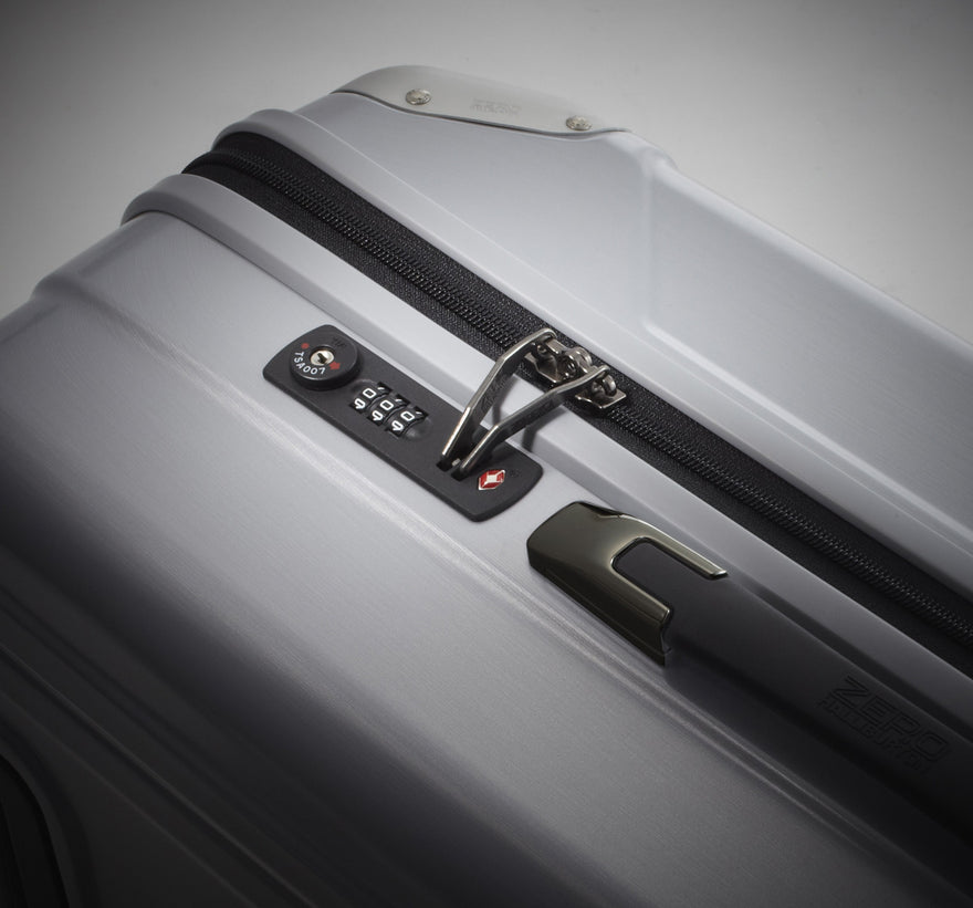 Travel in style with the new Zero Halliburton Geo Polycarbonate 26" 4 Wheel Spinner Travel Case. Polycarbonate hardside construction, theft-resistant zippers, as well as a three digit TSA approved combination lock, this case will protect your valuables around the globe. Four wheel spinner design constructed with sealed ball bearings as well as a multi stage retractable handle which provides effortless mobility. The fully lined interior features adjustable compression panels and mesh compartments to organize your items and reduce shifting during travel.