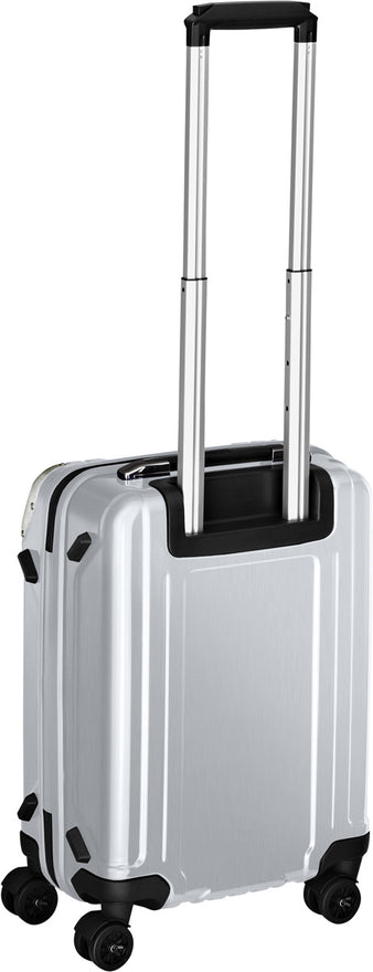 Travel in style with the new Zero Halliburton Geo Polycarbonate Carry On 4 Wheel Spinner Travel Case. Polycarbonate hardside construction, theft-resistant zippers, as well as a three digit TSA approved combination lock, this case will protect your valuables around the globe. Four wheel spinner design constructed with sealed ball bearings as well as a multi stage retractable handle which provides for effortless mobility . The fully lined interior features adjustable compression panels and mesh compartments to organize your items and reduce shifting during travel.