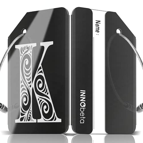 Initial Luggage Tags for Men and Women, Personalised Stainless Steel Luggage Labels for Suitcases X 1 Piece, Mirrow Black, Letter K