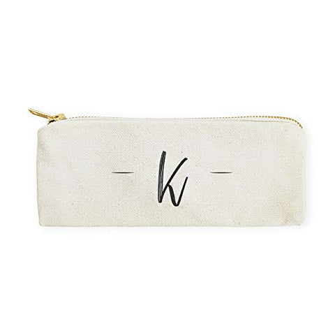 The Cotton & Canvas Co. Personalized Handwritten Monogram Initial K Pencil Case, Cosmetic Case and Travel Pouch for Office and Back to School
