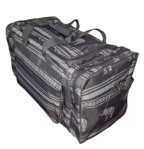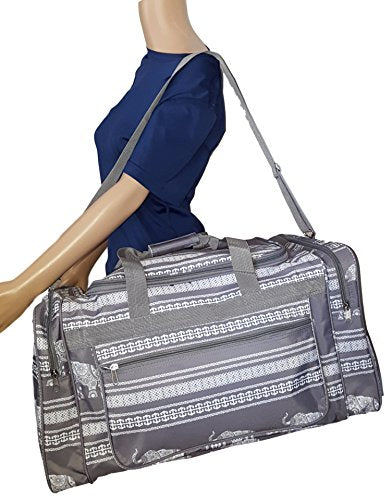 21 Inch Fashion Print Gym Dance Cheer Travel Duffle Bag (Gray Stripe Elephant)