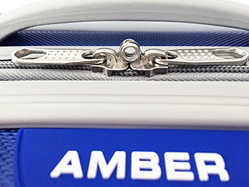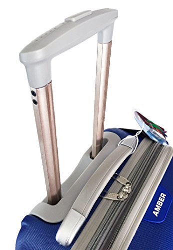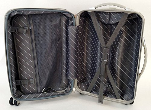 Details: All 3 luggage pieces are same in aesthetics but differ in sizes ABS material gives outer shell durability High quality aluminum telescoping handle system expands with push button 2 padded handles on top and side 4 spinner 360 degree wheels Inside compartment has gray lining along with 2 straps Inside has netted pocket which latches on to the other side of the case and can be used to separate the main compartment into 2 areas The main compartment can be locked (locks not included). 2 smaller cases fit into the largest one