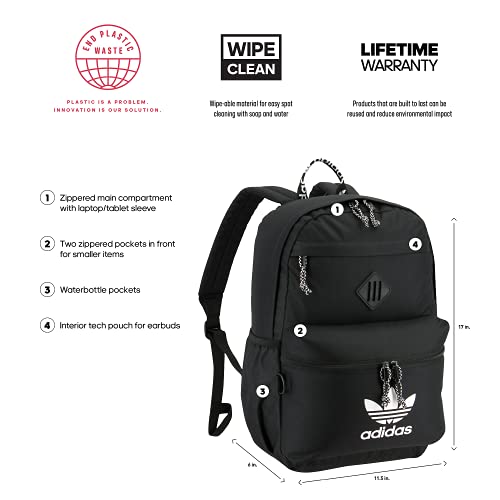 Details: Bring along everything you need for the gym or school. this adidas backpack has an inner laptop sleeve and a tech pouch for earbuds to help keep you connected. made with recycled content, it's built to last.