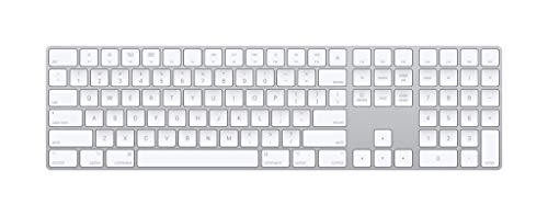 Details: Magic Keyboard with Numeric Keypad features an extended layout, with document navigation controls for quick scrolling and full-size arrow keys for gaming. A scissor mechanism beneath each key allows for increased stability, while optimized key travel and a low profile provide a comfortable and precise typing experience. The numeric keypad is also great for spreadsheets and finance applications. And the built-in, rechargeable battery is incredibly long-lasting, powering your keyboard for about a month or more between charges.