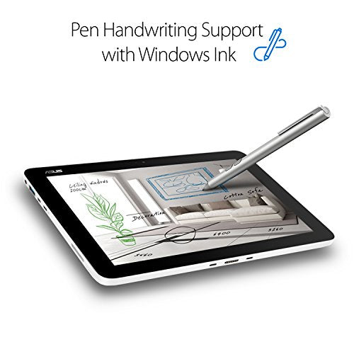 ASUS T102HA-C4-WH Transformer Book 10.1" 2 in 1 Touchscreen Laptop, Intel Quad-Core, White, Pen and
