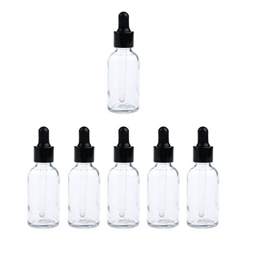 Baoblaze 6 Packs 50ml Refillable Glass Dropper Bottles - Multi-purpose Empty Essential Oil Vials