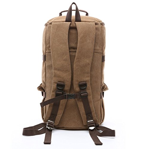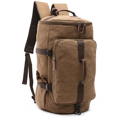- Top-quality, dense, durable canvas with a bit of PU leather straps which furthers the overall vintage-rustic look of this new Travel duffel backpack bag