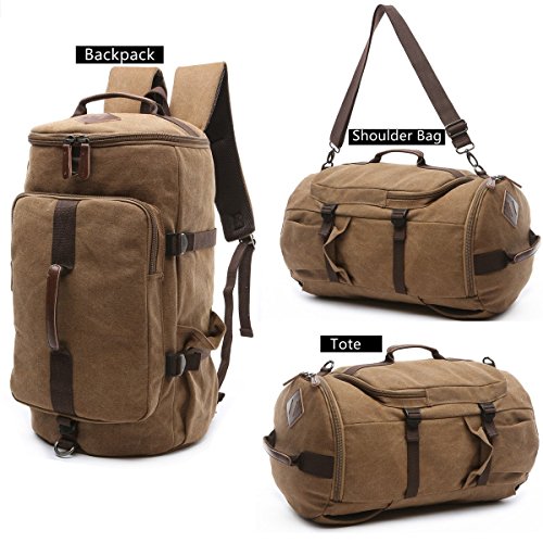Details: BAOSHA HB-26 3-Ways Vintage Canvas Men Holdall Weekend Travel Duffel Bag Backpack Messenger Shoulder Bags Convertible Travel Hiking Rucksack Weekender Overnight Bag Handbag
