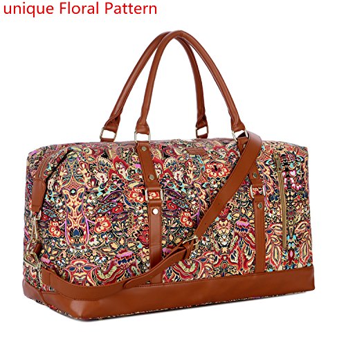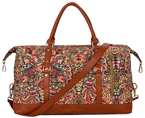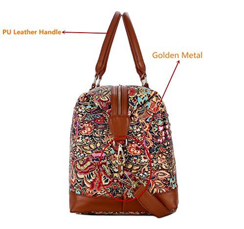 BAOSHA Oversized Canvas PU Leather Travel Tote Duffel Bag Carry on Weekender Overnight Bag for Women and Ladies