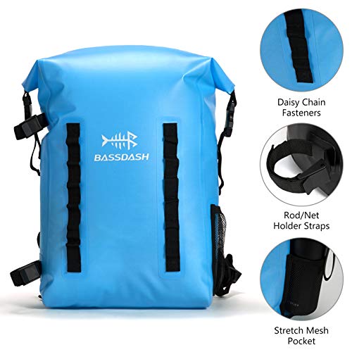 - Two adjustable straps at one side of the bag to attach your rod, rod tube or net; A stretch mesh pocket at the other side for a water bottle; Daisy chain webbing at front offering attachment points