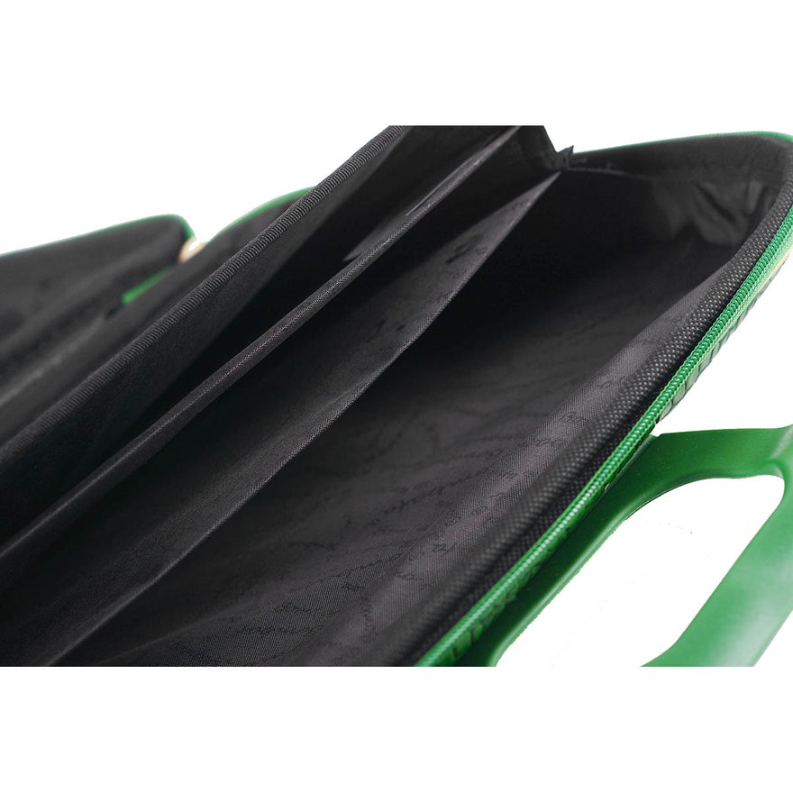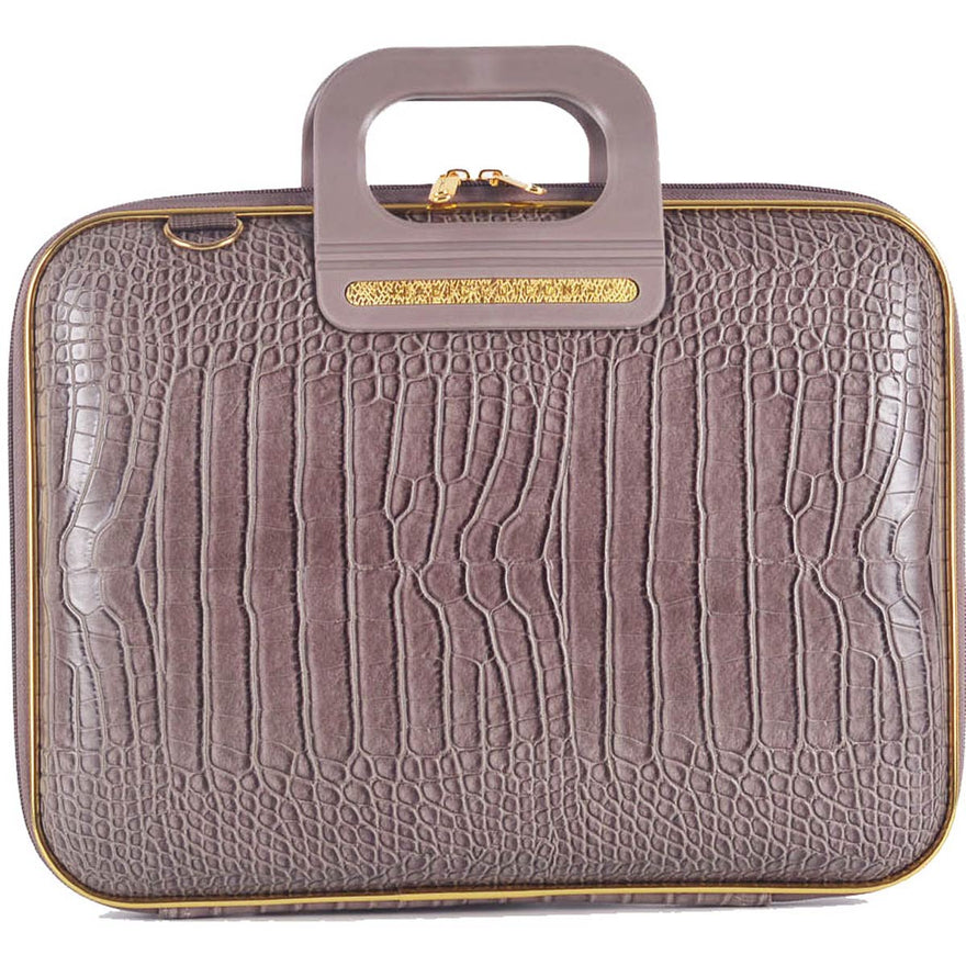 The Bombata Bag Arezzo Briefcaseby Fabio Guidoni is the exclusive luxury version of the bag. It is thenatural evolution of the original design. Bombata is known for its colors. Wewanted the inside to look fresh, funand beautiful as well as the outside.This new collection features redesignedinteriors with a paddedcompartment for laptop, newmaterials and colored detailsmatching the color of the outside.