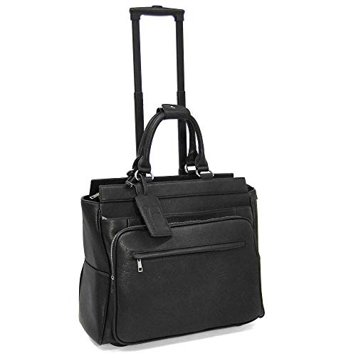 Details: The Cabrelli Piper Pebble Rolling Laptop Bag can used as an airplane carry-on and has padded compartments for a 15" laptop and a tablet. It is fitted for the working, traveling woman who appreciates the smart and unconventional.