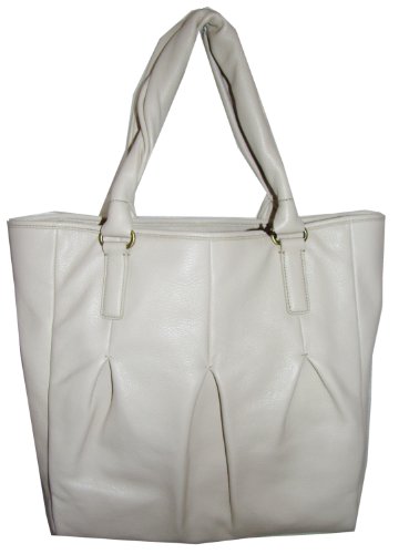 Details: This Cole Haan Tote bag is made with genuine soft leather and comes in different colors including black, shrimp and white pine. Accented with brushed gold/brass hardware. Magnetic snap closure, lined interior with pockets and pleated front, makes this bag a perfect for carrying your valuables including your laptop. When fully opened - could fit 15 inch wide, 13 inch long - laptop.