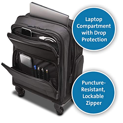 Details: Comfortable, secure, stylish, durable, and featuring a separate clothes compartment, The contour 2. 0 Pro overnight laptop spinner — 17” is the perfect overnight four-wheeled spinner for mobile professionals. The contour 2. 0 Pro overnight laptop spinner — 17” also features a contoured panel that hugs the body and shifts weight closer to the center of gravity*; a puncture-resistant, lockable zipper; Tough, water-resistant material; ample space, yet Meets most carry-on guidelines**; and interior padding for device protection. When lifting properly. **Carry-on guidelines vary by airline. Check with your airline for details