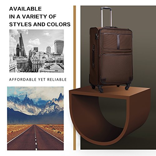 Details: This luggage made high quality hard wearing super lightweight 3color Jacquard xoford material. The sturdy, adjustable telescopic handles and the form-grips make them easy to handle. Four multi-directional smooth and silent rubberized wheels allow 360° rolling in multiple directions, for easy maneuverability. Not spacious enough, don't worry. 24in, 28in has expanded function, adding an extra 2 inch of width.Plus, multiple front zippered pockets are perfect for travel documents and magazines. It also features four spinner wheels for smooth rolling. Dual top and side carry handles makes lifting easy. Spacious design: 24in, 28in has expanded function, adding an extra 2 inch of width. 20in features a large front pocket. Tough Wheels: Four multidirectional smooth and silent 360° wheels, for very high ride comfort. Better material: Better than polyester material, the luggage is made of 3color Jacquard oxford cloth. Type of closure: Exquisite and durable zippers closure. Telescope handle: Push-button locking internal retractable handle system. TSA Lock: TSA combination lock with resettable code for secure travel in the USA. Full-lined interior: Fully-lined interior with separate mesh pocket, Functional straps to secure the packed clothes. > Measures: > 20inch (23 x 10x 14), 24innch (16.5 x 11 x 27) 28inch (18 x 12.5x 31), 24in,28in is Expandable add 15%to the scalable space. > Size: 20' L23in* W10in* H14in> 24' 27in* W11in(13in when it is expandable)* H16.5in> 28' L31in* W12.5in(14.5in when it is expandable)* H18in> Capacity: 20in38L, 24in60L, (75L when it is expandable) 28in 93L(110L when it is expandable) > Weight: 20in 6lbs 24in7.3lbs 28in9.7lbs> Travel days: 20in1~4days 24in4~7days 28in 7~9days>